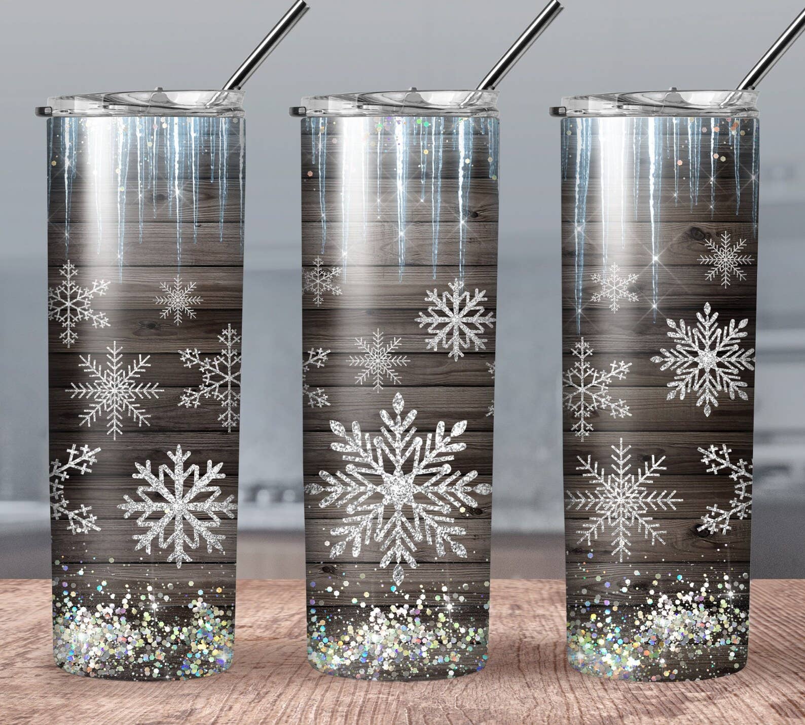 20 oz Stainless Steel Tumbler - Christmas Snowflakes
